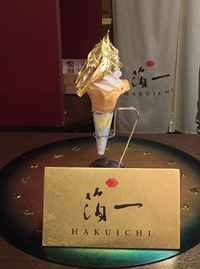 金沢のひがし茶屋町に箔一のお店があり、そこで、金箔ソフトを見て楽しみながら、美味しく頂くことができます。インスタ映え間違いなしです。