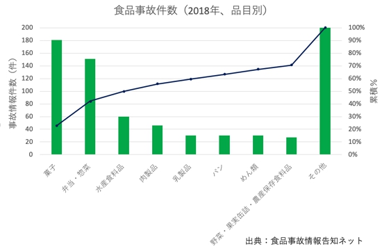 品目別は、最も多いのは、「菓子」の181件で、前年の200件からは19件減少しました。しかし、「菓子」が最多であるのは過去9年間(2009年~2017年)連続です。