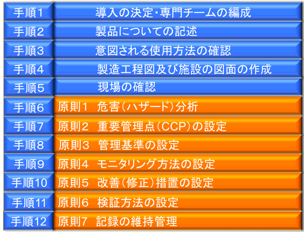 HACCPは、7原則12手順からなる安全で衛生的な食品を製造するための管理方法の一つです。