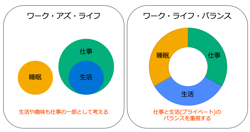 同様な言葉に『ワーク・ライフ・バランス』がありますが、それは仕事と生活や趣味を区別してそのバランスを保つという考え方です。